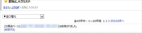 表示がされなくなった商品