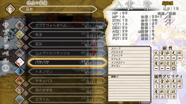 主人公と同様、ドッペルもレベルの概念があり、戦闘を繰り返す事によって成長します。
