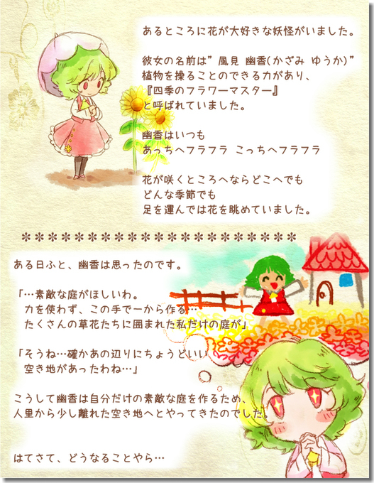 あるところに花が大好きな妖怪がいました。名前は「風見幽香(かざみゆうか)」